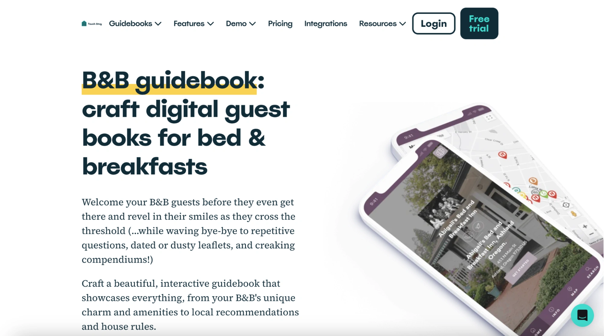 B&B owners use Touch Stay to create mobile-friendly digital guides that guests can access before and during their stay, including check-in instructions, breakfast times, parking notes, restaurant picks, and anything else that reduces the pre-arrival question load.