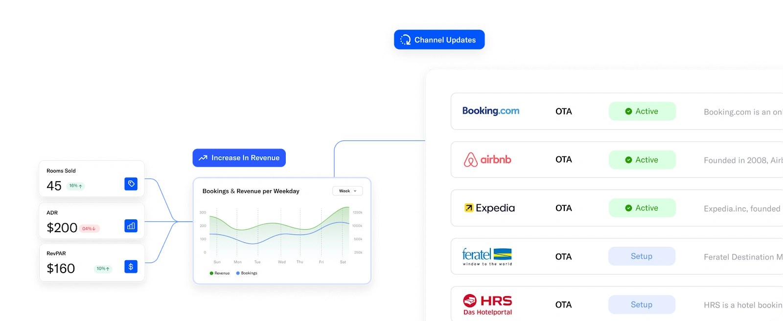 That way, you can manage multiple distribution channels in one place. Your availability, rates, and bookings stay accurate on every platform without any manual efforts.
