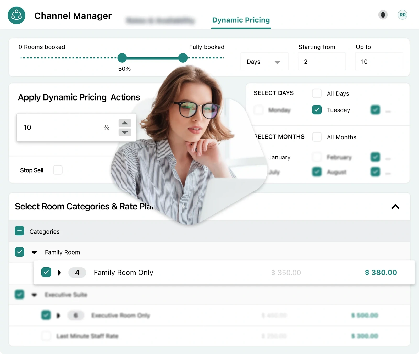 Our platform adjusts room prices automatically according to demand signals, competitor pricing, and market trends, thanks to the AI-powered dynamic pricing. Then roommaster Channel Manager instantly distributes those updated rates to every OTA, GDS, and direct booking channel. So, no more overbookings and confusion with room rates.