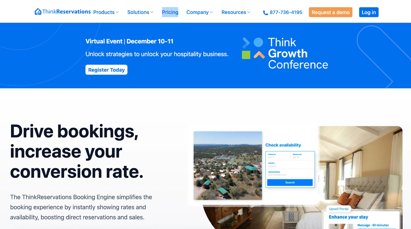 ThinkReservations offers a powerful hotel booking engine built to simplify your booking process and drive direct reservations. It delivers a fast and intuitive guest journey with real-time availability, automatic rate adjustments, and personalized upsell options.