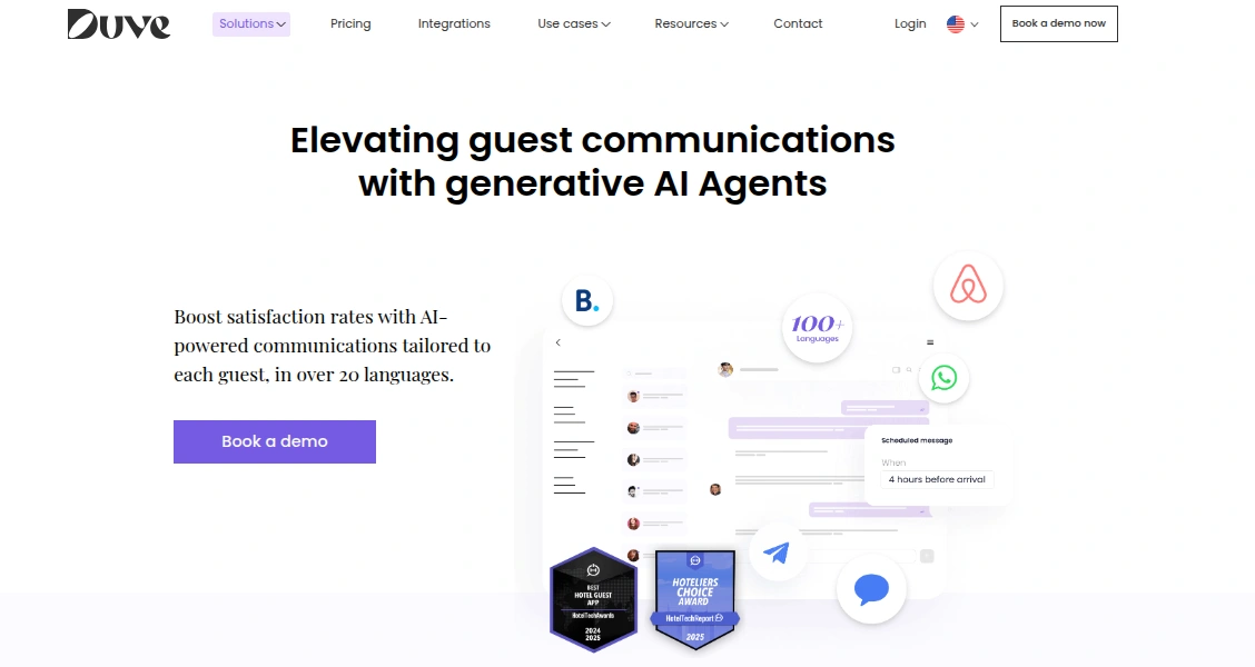 Duve offers guest messaging software with AI Agents, letting you attend to the most urgent matters first. It analyzes your guests’ tone of voice, their journey stage, and the topic of the inquiry, and moves the urgent requests and room service orders to the top. That way, your team knows what needs attention first and what can be handled later.