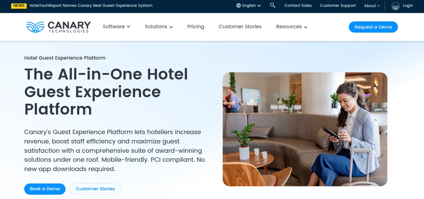 Canary has a guest experience platform with a messaging feature and chatbot. You can send personalized messages based on guest behavior, like browsing specific pages on your website.