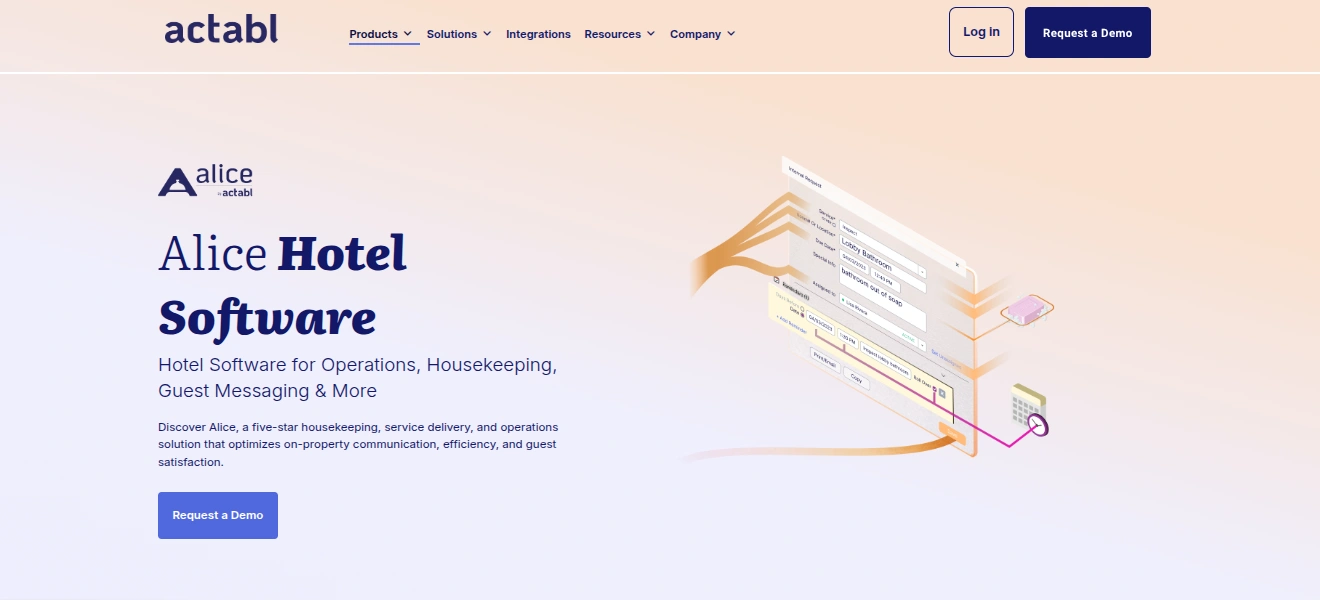 Alice is a housekeeping and service delivery solution with guest messaging. It tracks guest requests, helps staff coordinate for faster service delivery, and analyzes communication to anticipate guest needs.