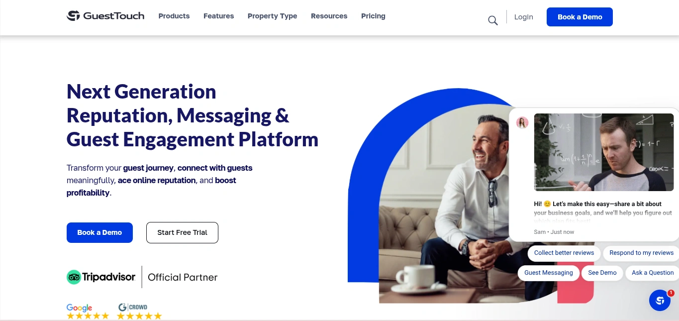 It also comes with centralized reputation monitoring. You can track online reviews, identify and resolve recurring issues, and get more repeat guests.