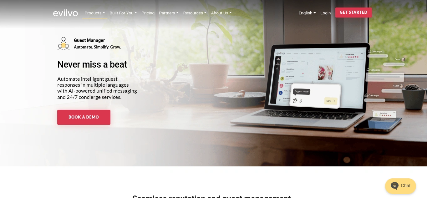 eviivo is a hotel PMS with a dedicated guest manager feature for automating communication. You can send relevant guest responses in multiple languages with AI-powered unified messaging. You get auto-replies, auto-reviews, and booking pre-approvals and quotes.