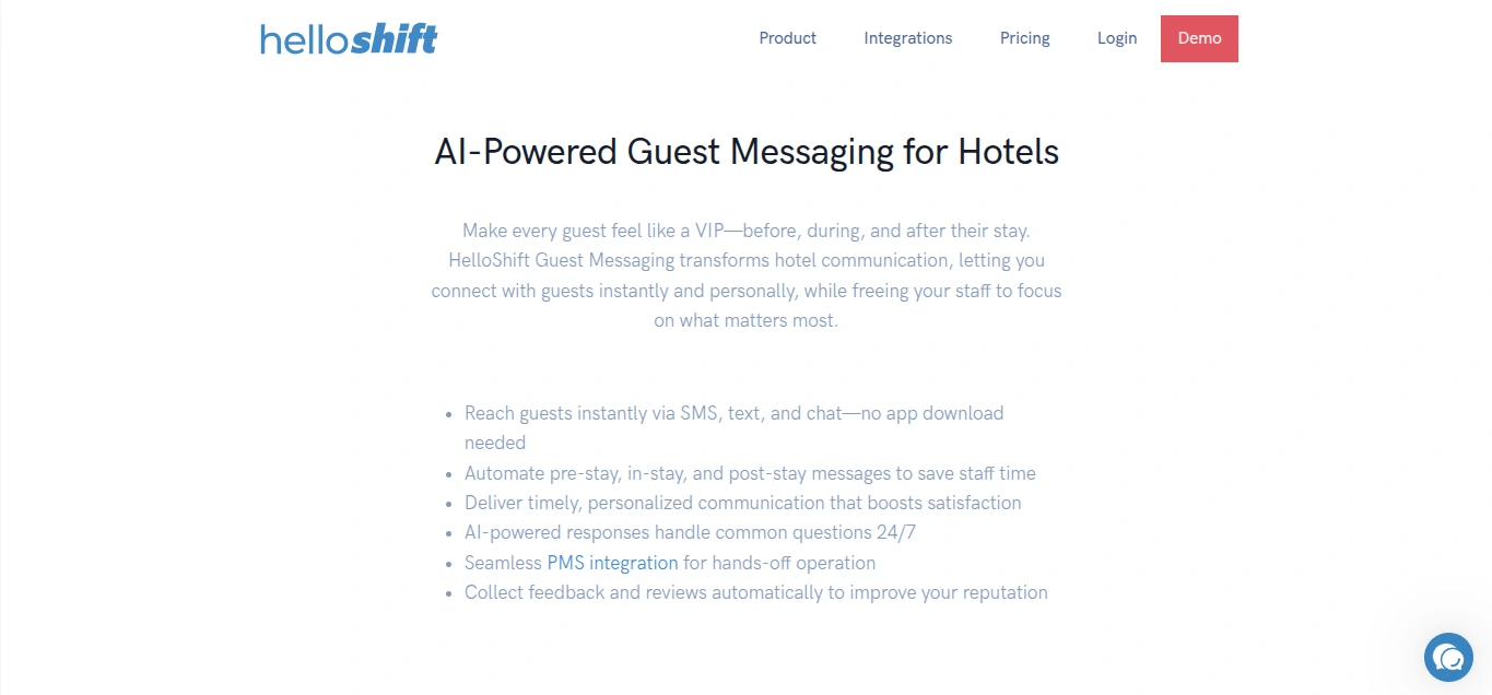 HelloShift offers housekeeping monitoring and unified guest messaging features. It lets hotels manage guest conversations across SMS and digital channels from one inbox while tracking room status and service progress in real time.