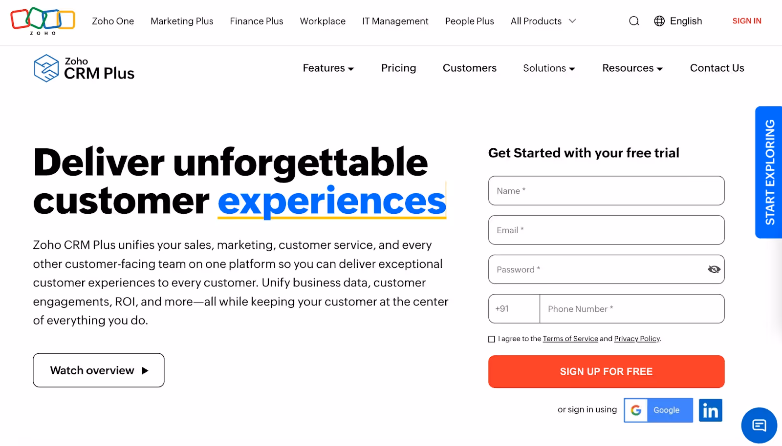 9. Zoho CRM Plus (Best for cost-effective hotel scaling)