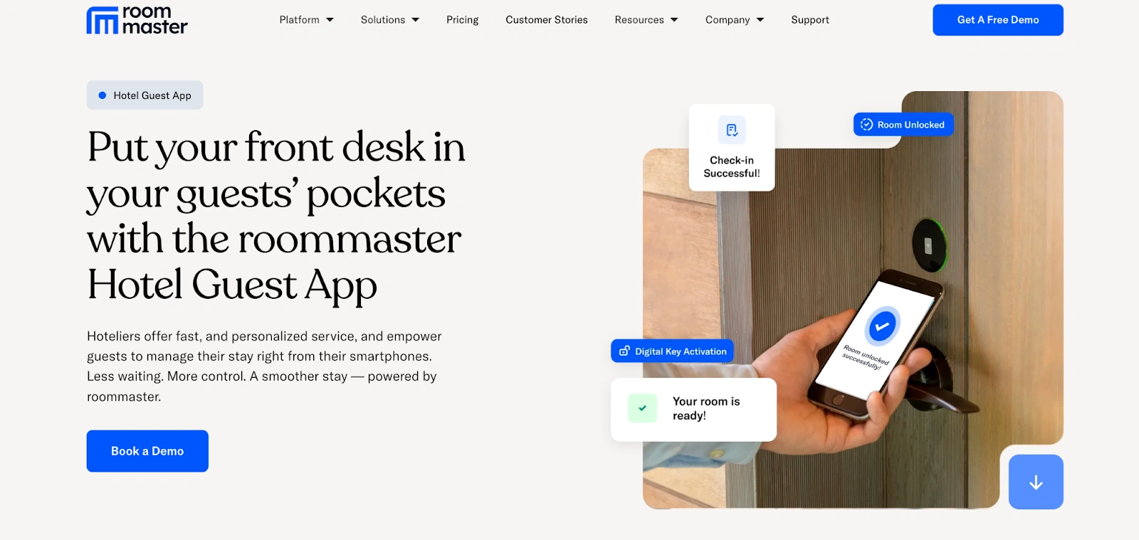 The best guest experience app offers contactless check-in, service requests, and real-time updates. The roommaster Hotel Guest App delivers all these features, helping hotel staff manage operations efficiently, create a seamless experience, and improve guest satisfaction.