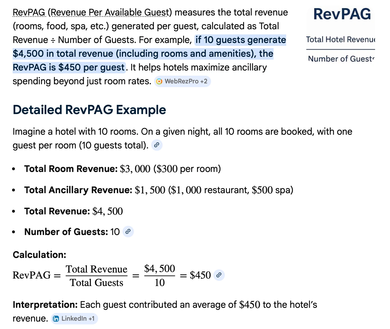 Compared to RevPAR, which is divided by room nights, RevPAG is divided by guests. It aligns revenue more closely with actual customer behavior.
