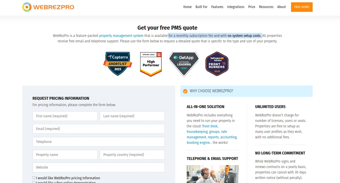 For detailed WebRezPro pricing information, just fill in the form on the price page, and their team will contact you. They will ask you questions about your property needs and walk you through the feature intricacies and clear any doubts you may have.