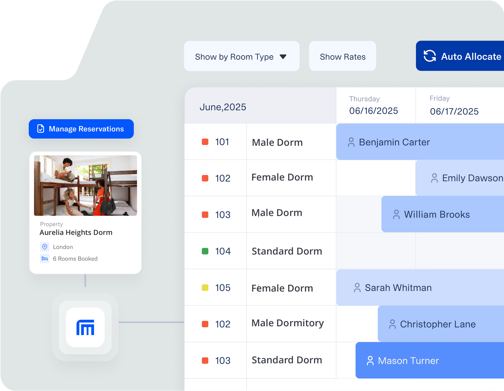 Hostel front desks don’t run like hotels. Beds change daily, guests move between dorms, and your team needs clarity at a glance. roommaster is built to handle that from day one.